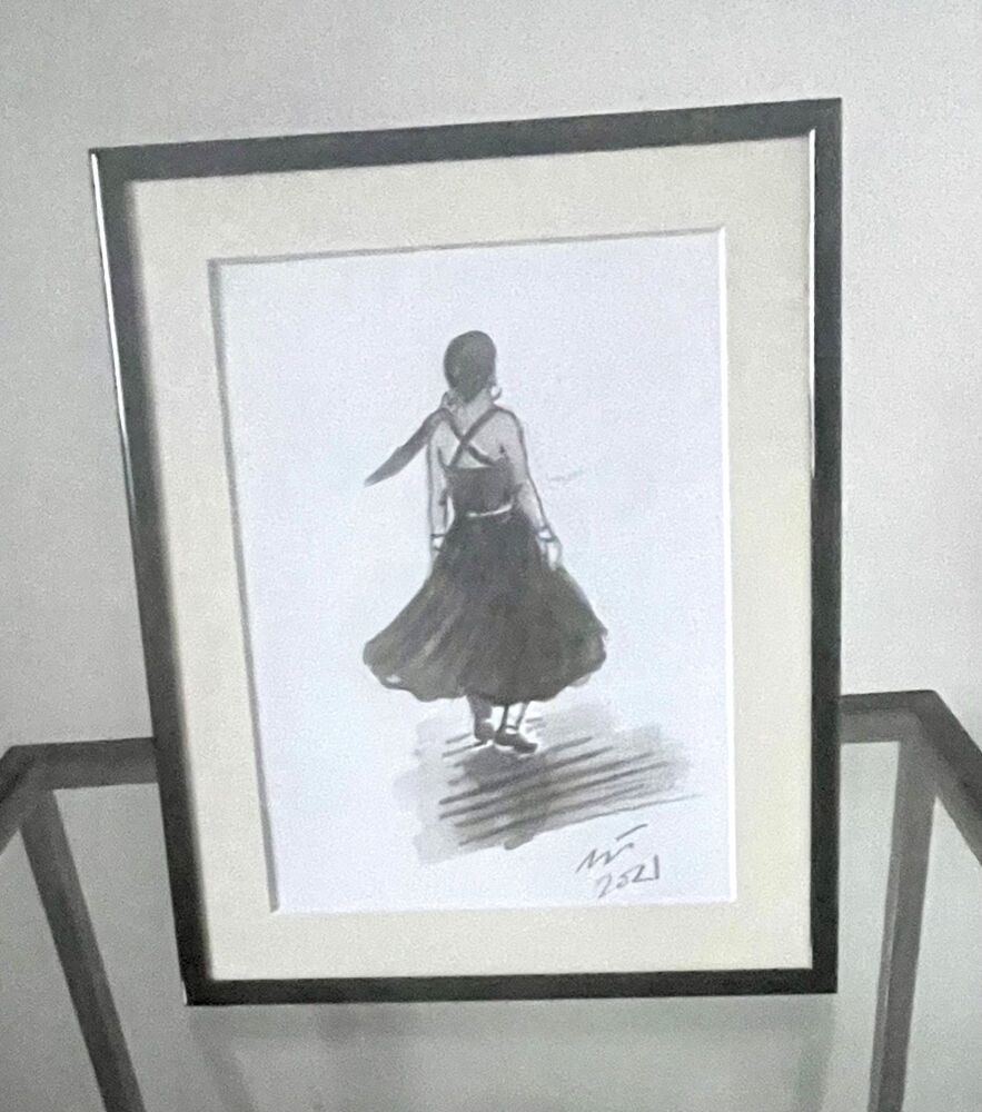 "Northern Soul Girl" - An Original Japanese Ink Painting, mounted and frame
